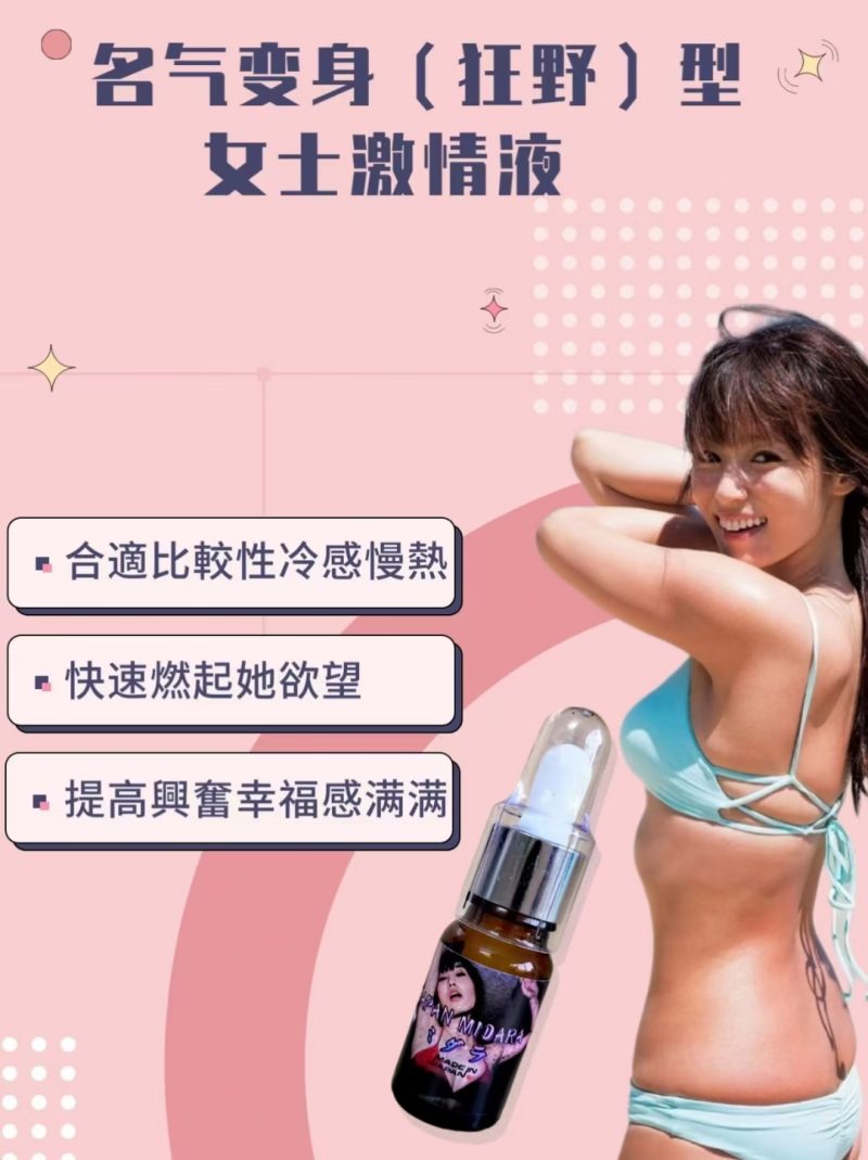 液體狀型,混合一種LEVEL UP愛情粉,可以將2-3cc ml 溶解在果汁或茶等飲料中飲用。戀愛前夕情侶一起喝很有效